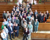 Ehejubilaeum.jpg: 33 ehemalige Brautpaare feierten gemeinsam mit Pfarrer Jakob Ewerling (hinten, Mitte) ihr Ehejubiläum.